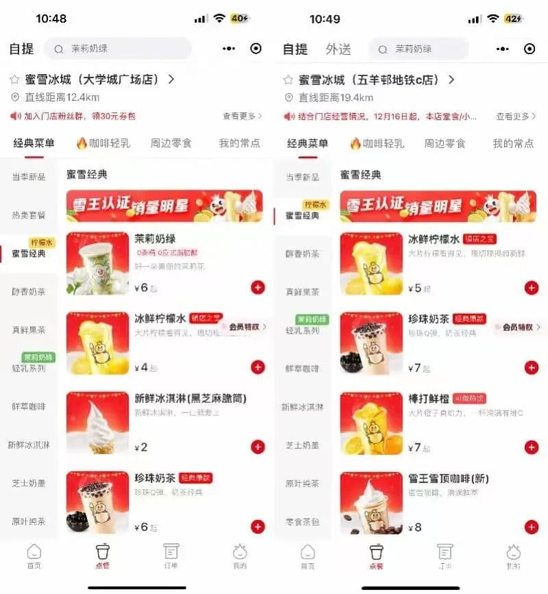 值得注意的是,虽然饮品价格上调,但外卖和团购价格保持不变。消费者在外卖平台上的购买价格和门店堂食的价格差距也在一定程度上引发了讨论。特别是在广州,很多消费者表示,外卖平台上的饮品价格普遍比堂食贵1元,但此次涨价没有影响到外卖价格,这让不少人稍感安慰。