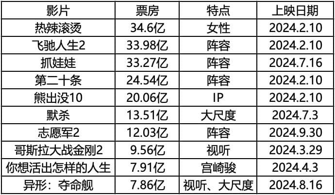 虽然2024年是电影市场开倒车的年份,可是从当下的票房榜单和趋势,就能够挖掘出未来增量的方向和密码。犀牛娱乐认为,接下来的增量有四点,且藏在今年票房TOP10当中,汇总一句话就在于求变和求新。