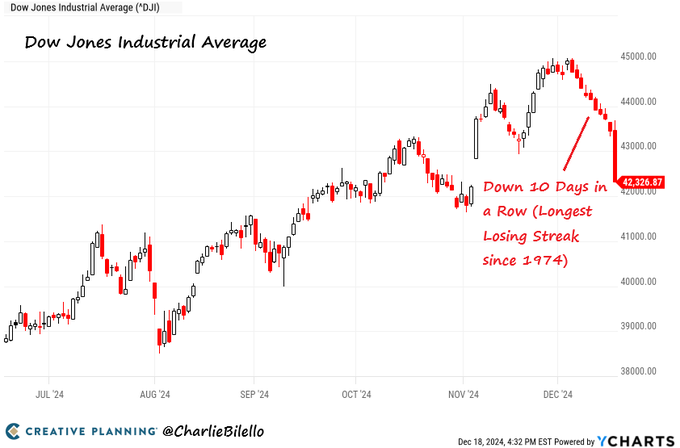 而从股指的跌幅看,美股市场确实在昨日遭遇了8月“黑色星期一”以来最惨的一天。道指和标普500指数均创下了自8月5日以来的最大单日百分比跌幅。道指连续第10个交易日下跌,这是自1974年10月连续11个交易日下跌以来的最长连跌纪录。标普500指数则经历了2001年以来跌幅最大的美联储议息日行情。