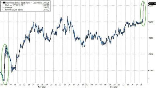 周三市场最大或者说唯一的赢家,似乎只有美元。彭博美元指数已将特朗普胜选以来的涨幅扩大至了4%。