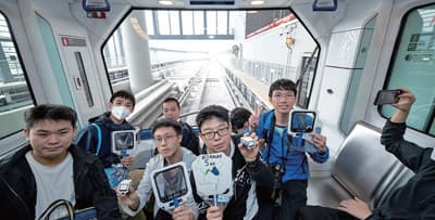 澳门市民搭乘澳门轻轨前往广东横琴站。