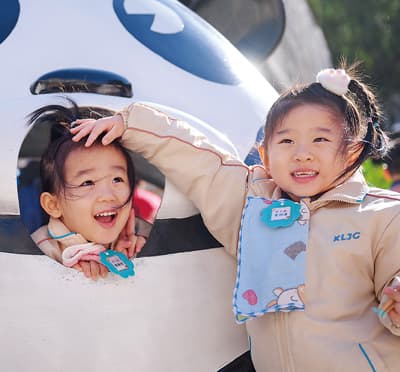 在澳门石排湾郊野公园大熊猫馆外玩耍的澳门小朋友。