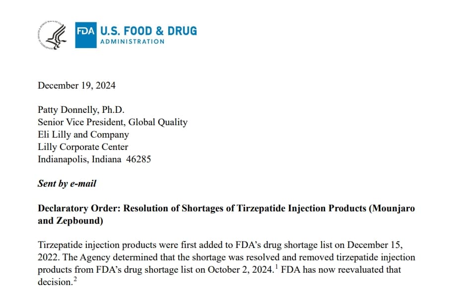 因此,FDA周四宣布,随着Zepbound短缺时代的结束,某些药店将不得不停止生产、销售或分发替尔泊肽复方制剂。