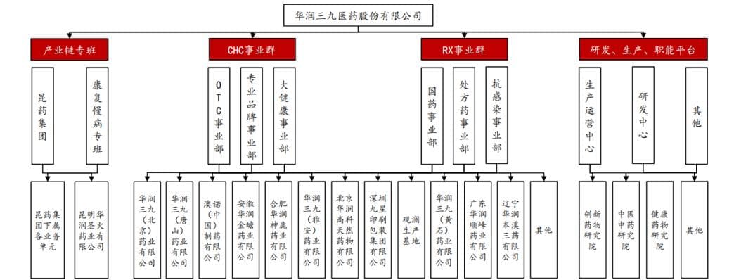 图:华润三九的组织架构,来源:方正证券