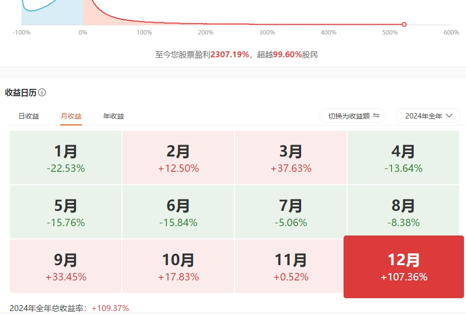 2023年因为AI游戏,华为手机,200%的收益。2024年,反复波动,下半年中线持有东睦,碰到2024年10月底三季报不及预期,错过两个月的行情。本来预期3-5倍收益,差得很多。