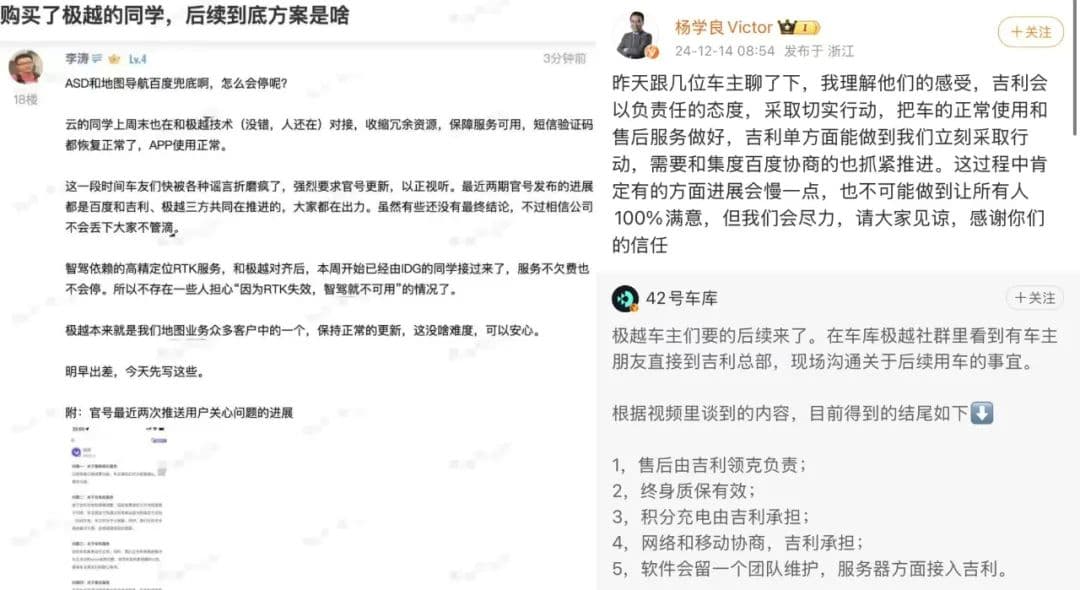 极越这场持续两周的“闪崩风波”,到这里总算有了阶段性的说法。另外,此前吉利控股集团高级副总裁杨学良、百度集团副总裁王云鹏和IDG运营管理负责人李涛,也先后向车主承诺,车辆使用和售后服务由吉利保障,智驾和地图导航服务将由百度兜底。