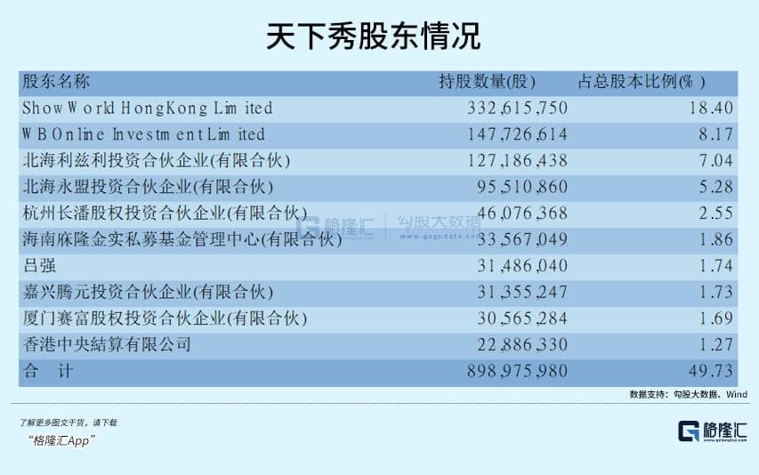 而微博则为第二大股东,持股8.17%,可以说是和天下秀高度绑定。
