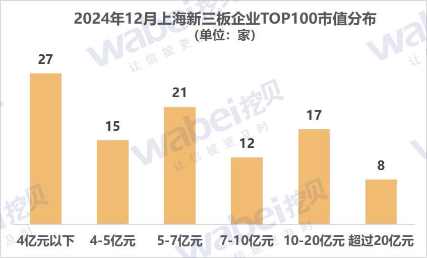 挖贝研究院梳理出2024年12月上海新三板企业市值TOP100(以下简称:“榜单”或“TOP100”),8家企业市值超过20亿元,恒业微晶等22家企业冲击北交所。