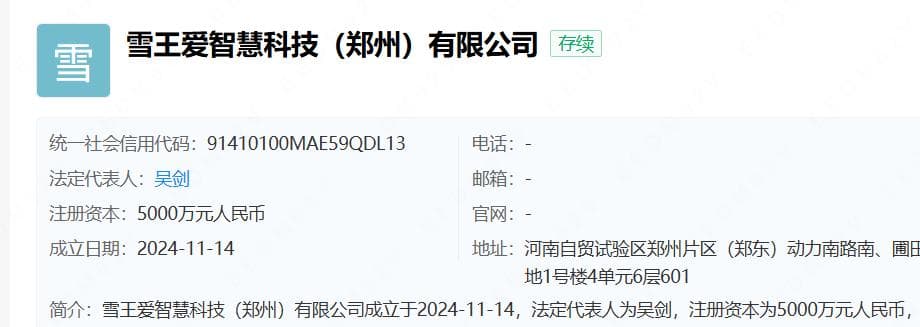 最近的消息是,蜜雪冰城两家子公司联合投资成立一家人工智能新公司“雪王爱智慧”,经营范围包括人工智能理论与算法软件开发、人工智能基础软件开发等。