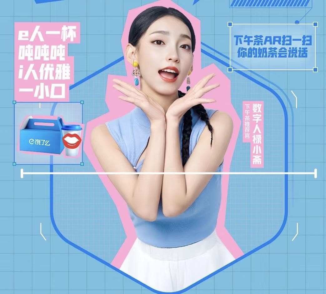此前,茶百道、益禾堂等品牌联合饿了么推出“下午茶推荐官”活动,结合了AI超写实虚拟偶像与AR技术,增加消费者的互动体验。在该活动中,消费者通过搜索口令词“下午茶AR”进入会场,可点击打开AR扫图,对准奶茶杯套或贴纸上的“下午茶推荐官”扫一扫,即可出现AR动效。