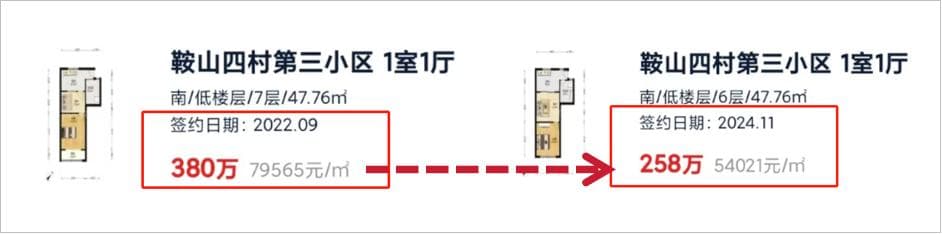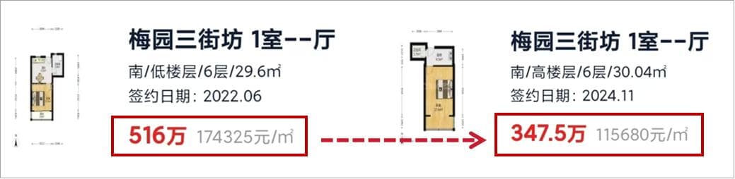 2年前同户型一室户单价接近8万/平,而今到了5万多的水平。这个案例也成为市区老破小的一个成交缩影:跌落的价格换来超量的成交。
