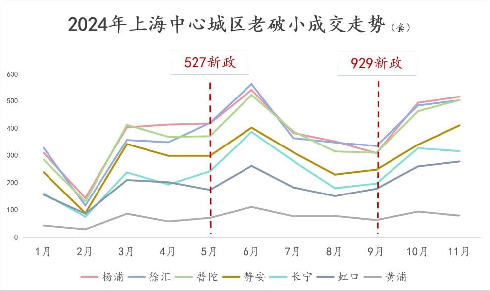 不只杨浦这个小区,全市月度成交来看,年底也迎来了老破小的二次春天。最具象化的就是下面这张折线图。
