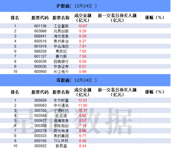 从深股通前十大成交个股来看,东方财富位居首位;中兴通讯和宁德时代分居二、三位。