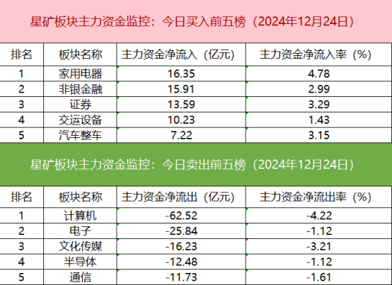 板块资金流出方面,计算机板块主力资金净流出居首。