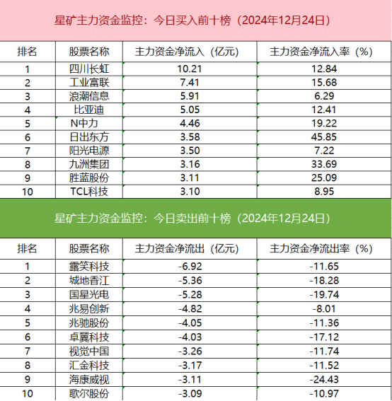 主力资金流出前十的个股所属板块较为杂乱,露笑科技净流出居首。