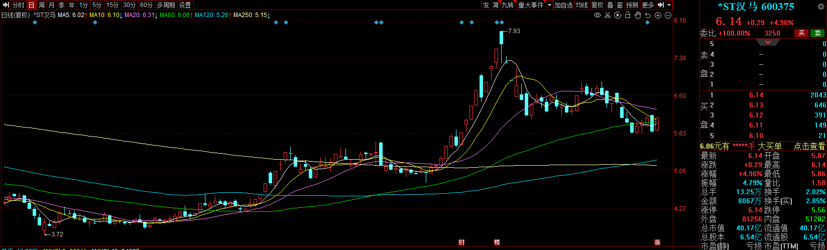 *ST汉马:按照每10股转增14.5股的比例实施资本公积金转增股本,共计转增9.49亿股