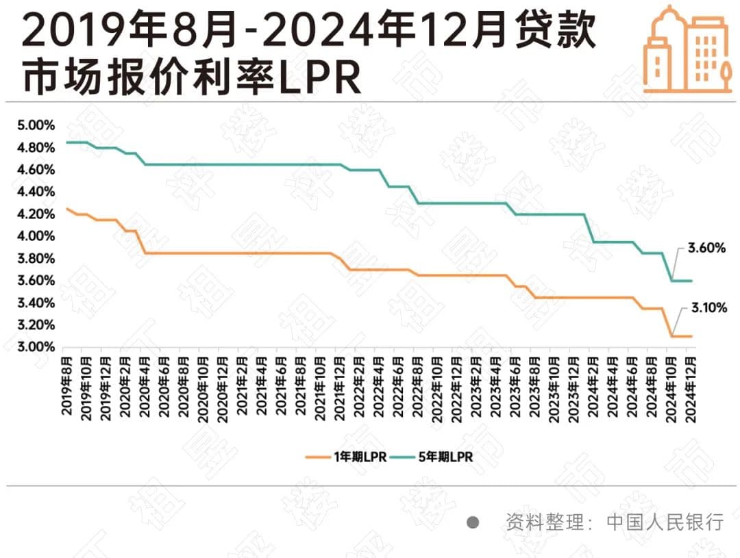 在降首付比例(首套房和二套房,最低首付比例统一为15%)、取消利率下限、降公积金利率之下,现行房贷政策已经比2016年更宽松。截止12月20日,央行公布LPR报价:1年期LPR为3.1%,5年期以上LPR为3.6%。作为房贷利率锚的5年期以上LPR利率在2024年已经三次调整,累计下调幅度已达60BP。
