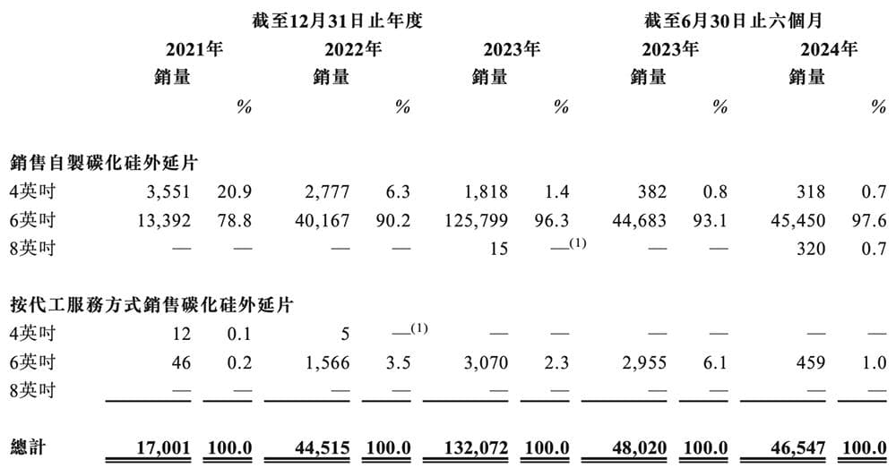 2021年、2022年、2023年、2024年上半年,天域半导体的销量分别为17001片、44515片、132072片、48020片,复合年增长率为178.7%。