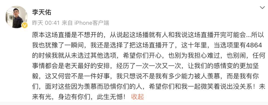 彼时的他并未绝望,而是试图通过更改姓名及简介蒙混过关,MC天佑先是将其微博昵称更改为“天佑吖”,个人简介由“网络MC麦手”改为直播红人、歌手、演员。不久后,他再次更名,现为“李天佑”,简介为歌手、演员。