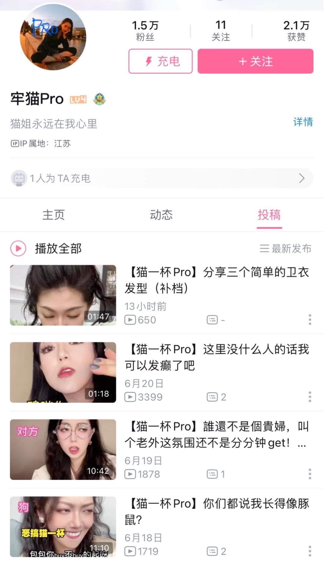 尽管无法断定“牢猫Pro”是否真正由猫一杯运营,但目前,打开B站,已无法查找到“牢猫Pro”账号。