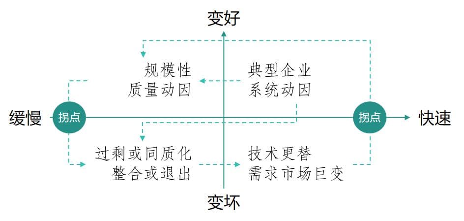 商业从来不是静态的,每一个行业都有巨大的动能。抬头看天,每个行业其实都有四种可能,性质上变坏或变好,时间上加速或变慢。
