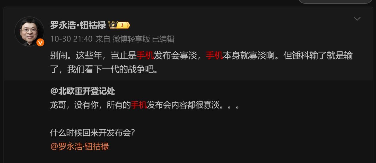 市场并不缺成熟解决方案,产品跟随主流不会很差,却无法给市场留下记忆点,泯然众人。罗永浩显然不是这样的人,当年的锤子手机光是在功能上就“养活”了众多国内深度定制系统。他曾在某位网友的评论中,表达了“手机本身就是寡淡”的想法。