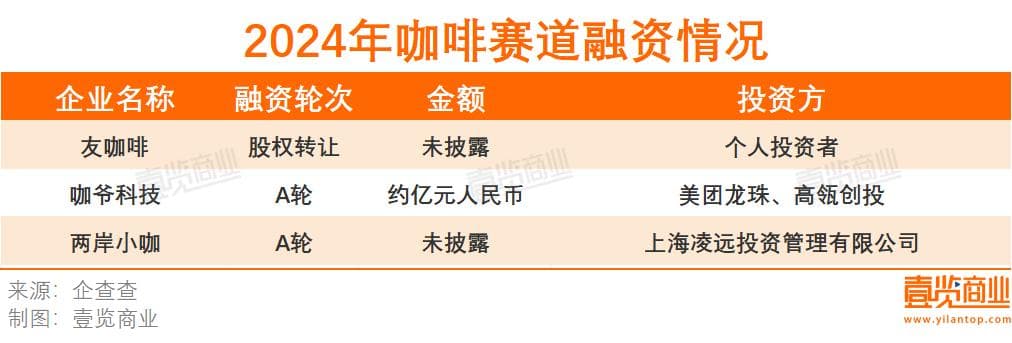 从融资情况看,11月份咖啡赛道获得3起融资,仅有咖爷科技披露融资金额。值得一提的是,这是咖爷科技在一年内斩获的第二轮融资,2023年12月,咖爷科技获得Pre-A轮融资,其引入的资方阵容强大,涵盖高瓴创投、美团龙珠、度量衡等众多知名投资机构。