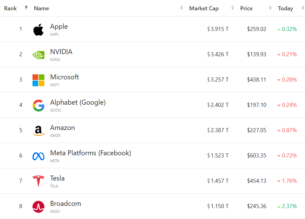 其他“六巨头”集体下跌,(按市值排列)英伟达跌0.21%,微软跌0.28%,谷歌C跌0.24%,亚马逊跌0.87%,Meta跌0.72%,特斯拉跌1.76%。博通涨2.37%。