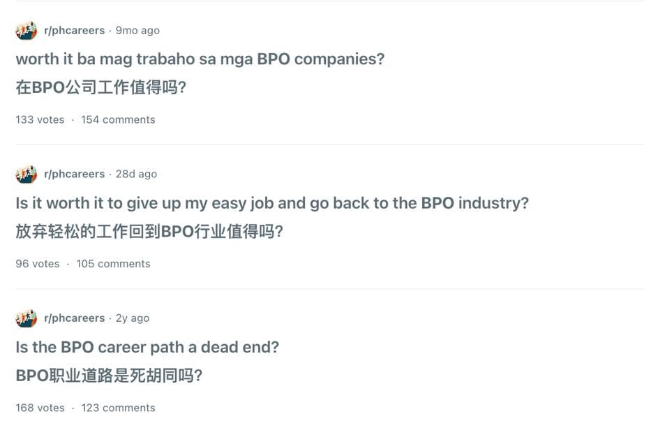 在菲律宾的职业论坛人们分享对BPO 职业前景的困惑| 图片来源:Reddit