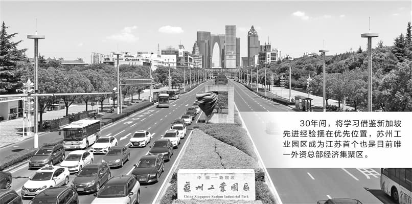 高标准、高起点的规划原则,深入骨髓的亲商理念,廉洁高效的政务投资环境……30年间,将学习借鉴新加坡先进经验摆在优先位置,苏州工业园区成为江苏首个也是目前唯一外资总部经济集聚区。与此同时,园区278平方公里的土地上集聚了19万家经营主体,平均每月就有1000家新设企业,每天创造国内生产总值超10亿元。