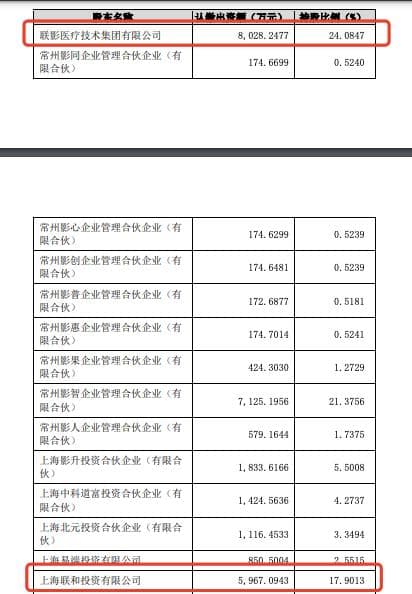 增资后,联影智能的股东结构也随之调整,其中,联影医疗的持股比例为24.0847%,上海联合持股比例为24.0847%,联影医疗持股比例为0.2849%。