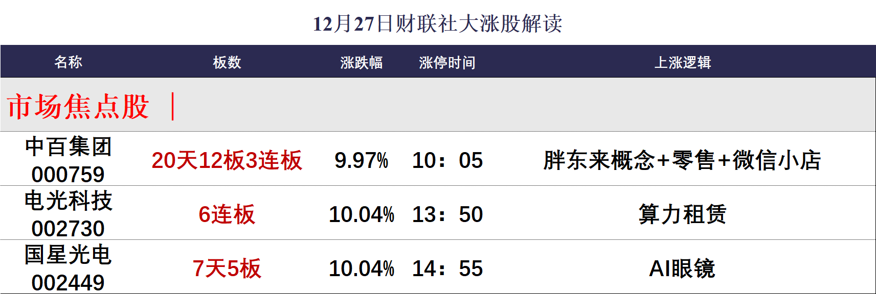 临近年末,包括海南、天津等多地宣布发放年终消费券以刺激各类消费,零售板块人气龙头中百集团继续大幅高开并封死涨停,走出20天12板,带动东百集团、武商集团等多只零售股涨停。由于龙头股中百集团集胖东来概念、首发经济等多概念于一身,且在板块内不断向上打开高度空间,对整个大消费板块的带动作用仍然明显。相比之下,被视为大消费行情中新分支的微信小店概念,仍受到港股人气风向标微盟集团日内的巨震波动的影响,6连板高标实益达封死跌停外,包括来伊份、青木科技、线上线下、元隆雅图等前排人气股纷纷位居跌幅前列。因此短期无论是微信抑或是抖音送礼概念,尽管短期春节的临近或仍有资金反复参与博弈,但板块内缺乏类似零售板块的中百集团的高度龙头,或仍对其后续强度形成不利影响。