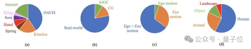 源视频的具体内容构成如下图所示,所有样本在收集时均通过人工筛选以保证内容的多样性并减少冗余: