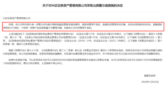 福建证监局要求,兴证资管应高度重视,采取有效措施加强整改,切实提升私募资管业务合规运作水平,并于收到本决定书之日起30日内提交书面整改报告。