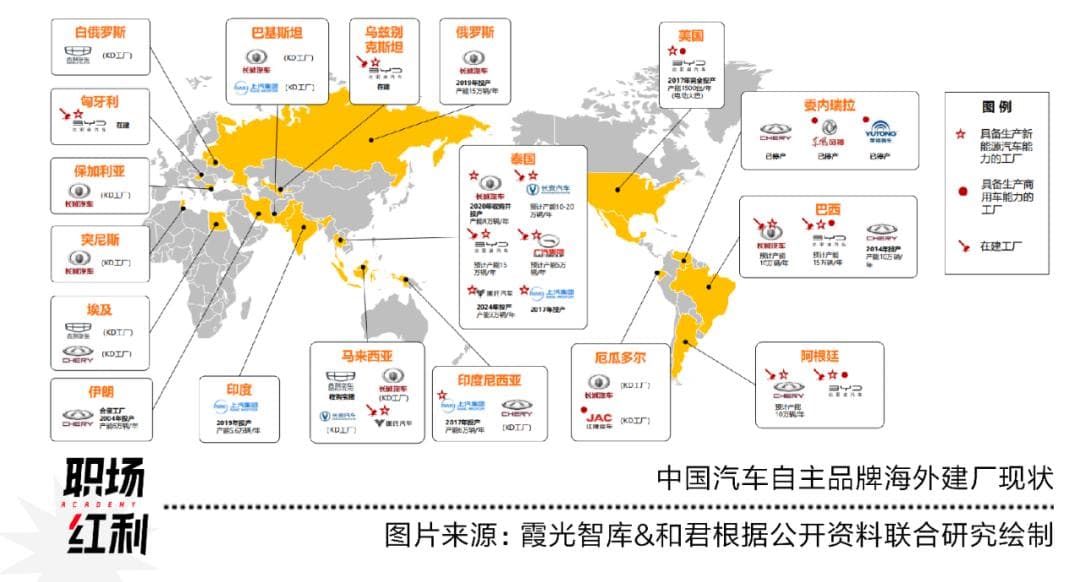 随着欧美贸易法案针对我国汽车直接出口的限制不断升级,新能源车企出海迈入“产能出海+产业链出海”新阶段,尤其青睐海外建厂。目前,中国车企海外建厂主要集中在东南亚,中东和拉丁美洲等地区。