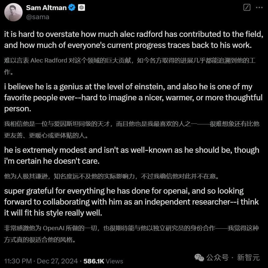 与此同时,奥特曼发文点名OpenAI研究员(大部分已经离职),表示感谢。