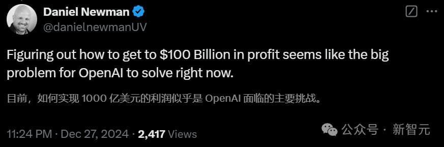 不过,如今最大困难已经破除,OpenAI的下一个目标,就是实现千亿美元利润了。