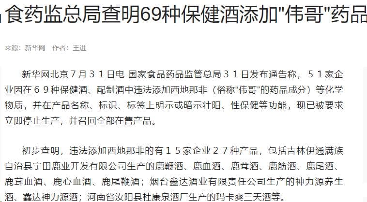 加了多少?以药监局2010年查封的一批药酒为例,里面检测出的西地那非含量高达66.5毫克/升。