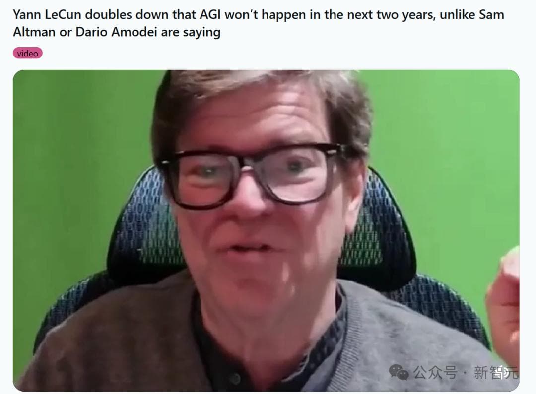 Meta首席AI科学家、图灵三巨头之一的LeCun,跟奥特曼对此意见不同,他强调,AGI在未来两年内不会发生。