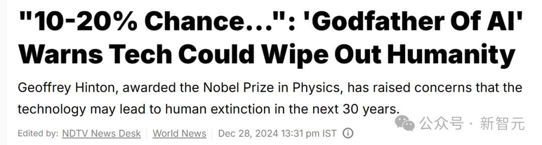 Hinton发2024末日预警:10年内人类灭绝,奥特曼预言18个月ASI降临