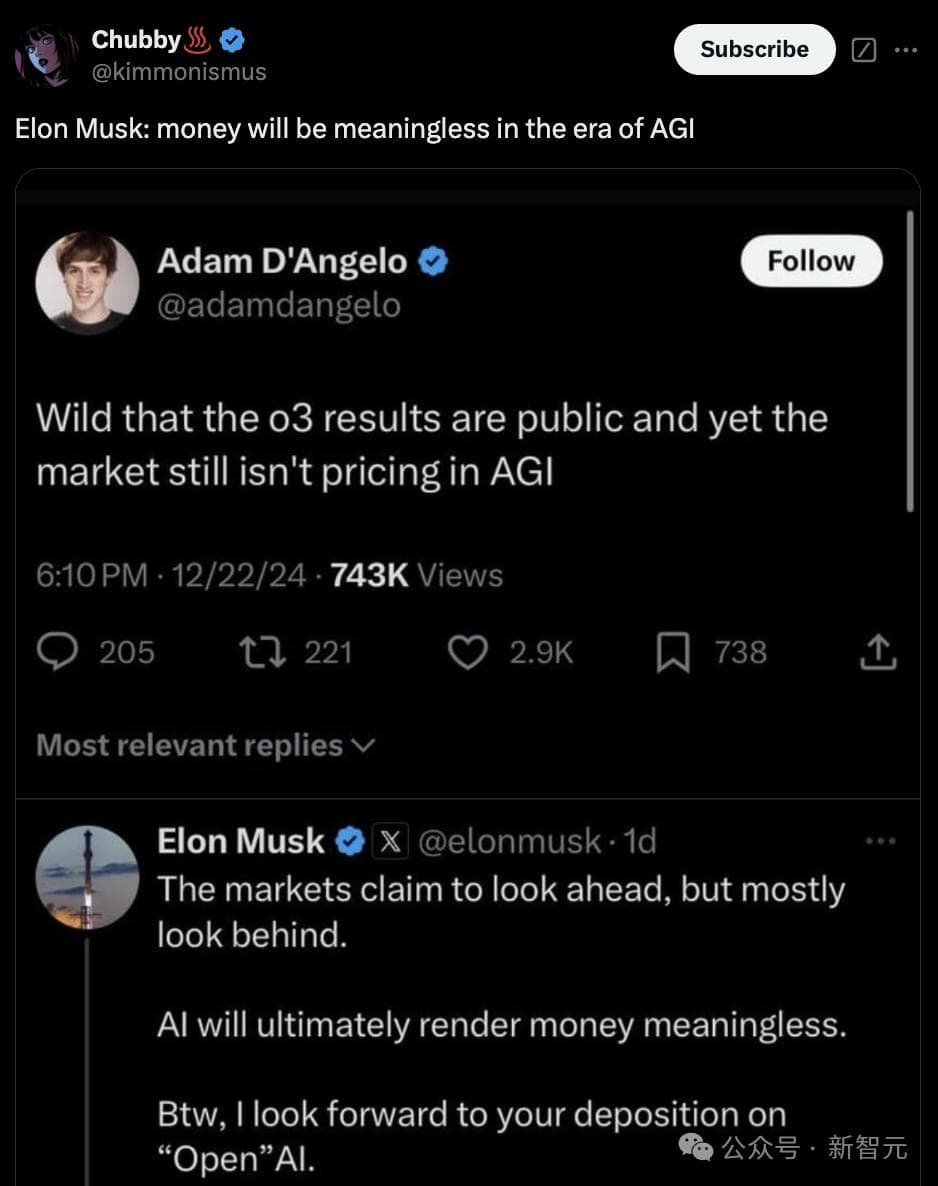 对此,马斯克回应道,「市场声称会向前看,但实际上只是关注过去。AI最终会让金钱变得毫无意义」。