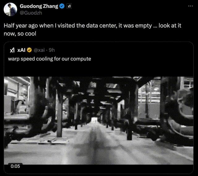xAI研究员Guodong Zhang表示,自己在半年前参观时还是空的,再看现在,简直太酷了!