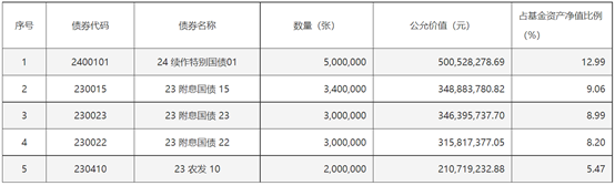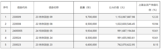 另一只年度收益居前的纯债基兴华安裕利率债同样重仓了长期限利率债。其中,24续作特别国债01为10年期国债,23附息国债23 为30年期国债,23农发10为10年期政金债。