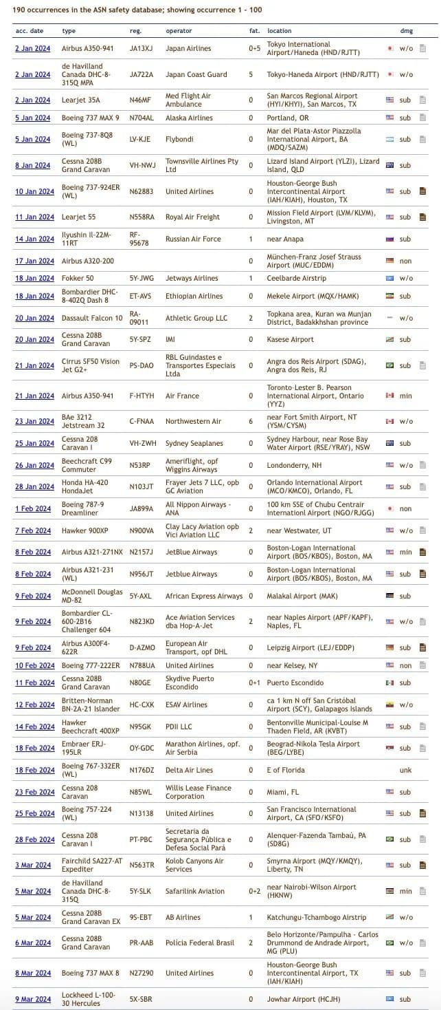 2024年航空事故不完全截图