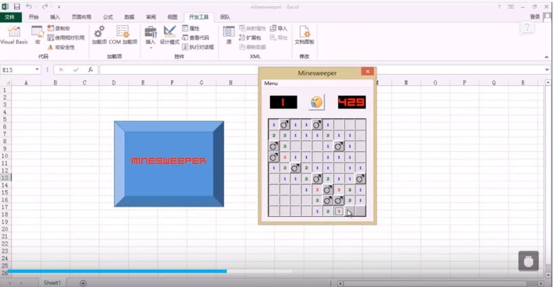 博主利用Excel的VBA开发了扫雷,不仅贴心的录制了视频,代码页没有加密,有兴趣的读者可以自己试试(图片来源:CaptainX@bilibili )