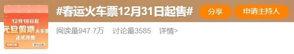 今年的春运火车票,明天( 12 月 31 日)就要正式开售了。