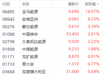 寒冬提振煤炭需求 金马能源大涨超18%领跑
