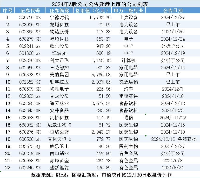 其中美的集团、龙蟠科技、顺丰控股等已于今年下半年先后登陆港股;康乐卫士1月29日递交了发行H股申请,成为北交所第一家拟赴港上市的企业;歌尔股份、南山铝业、科大讯飞等公司计划分拆子公司赴港上市。