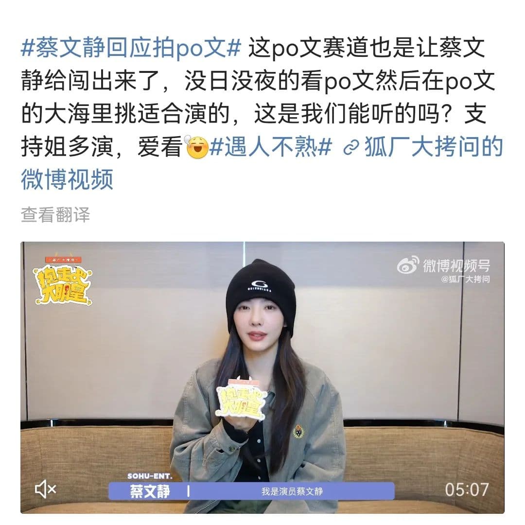 先后进组出演po文改编剧集《钢铁森林》《遇人不熟》女主角的蔡文静,在接受采访时就提到,她起初并不知道po文为何,闯入po文赛道深耕源自于“故事写得非常新鲜,观众也会觉得有新鲜感,会对这个题材很感兴趣”。