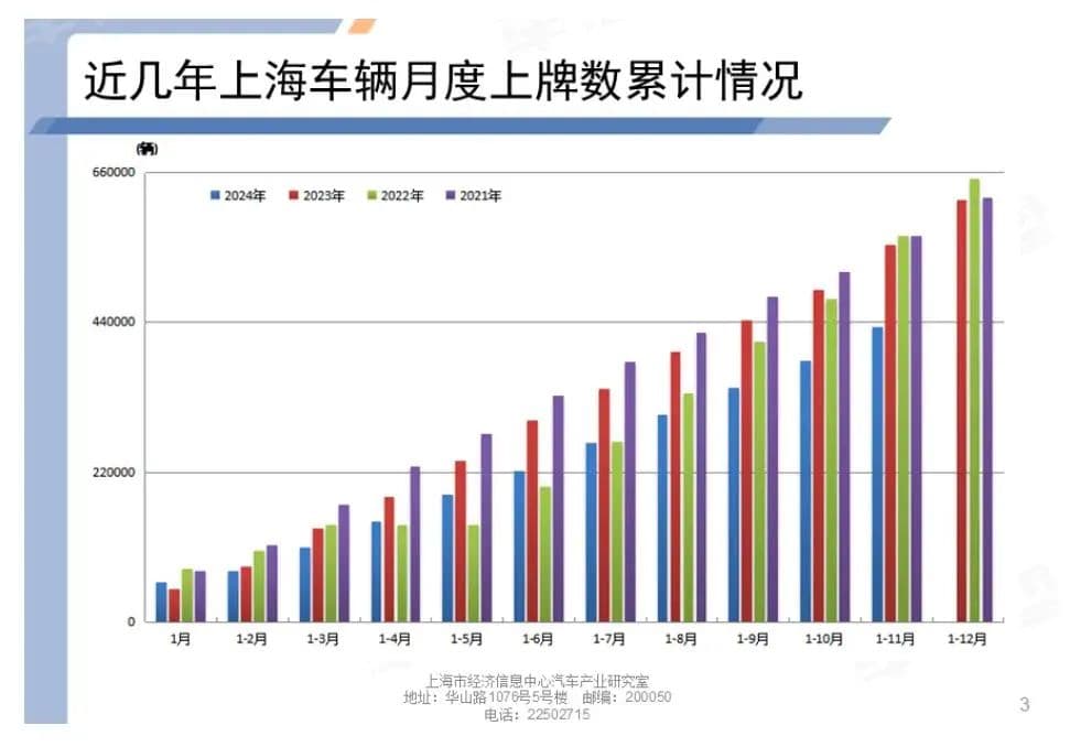对于上海来说,2024年1-11月新车上牌总量为43.3万辆,同比下滑21.87%,当月上牌量为4.9万辆,同比跌26.3%。